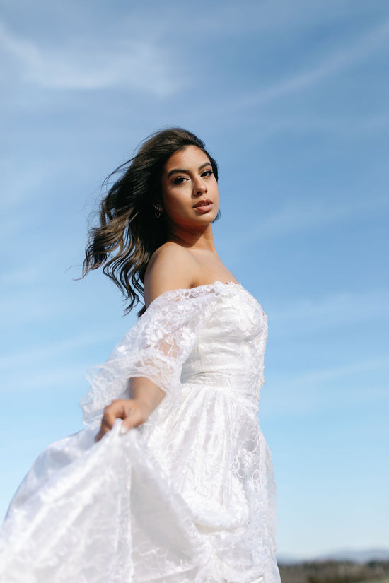 Riley: Boho Lace Off-the-Shoulder Wedding Dress