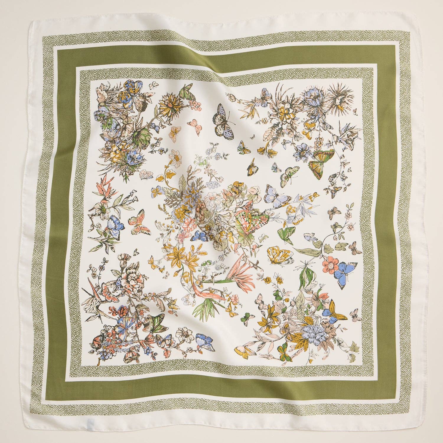 Floral Butterfly Print Scarf – Silk Texture Square Scarf for Elegant Styling Delicate and sophisticated, this floral butterfly print scarf brings a touch of nature-inspired elegance to your wardrobe. Made from high-quality polyester with a silk-like texture, it offers a soft, smooth, and lightweight feel for all-day comfort. The intricate butterfly and floral design is framed by a classic border, making it a stunning statement piece for both casual and formal outfits.