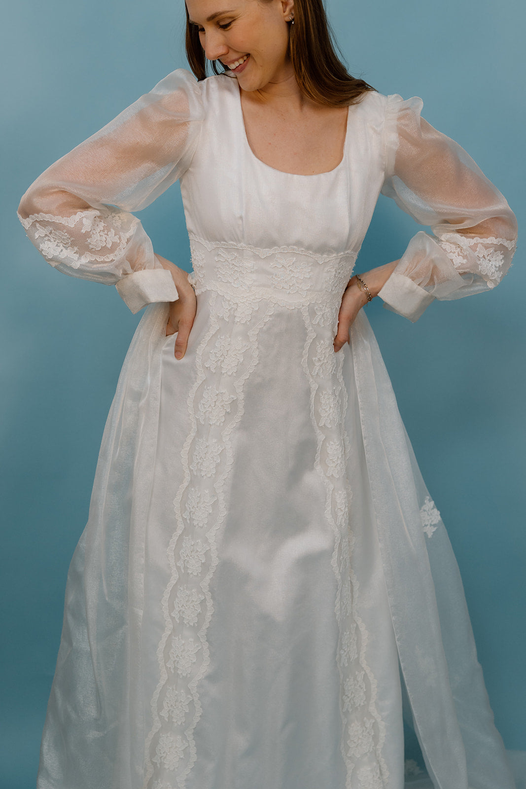 Lizzie: 1970s Iridescent Simple Dress with Detachable Train