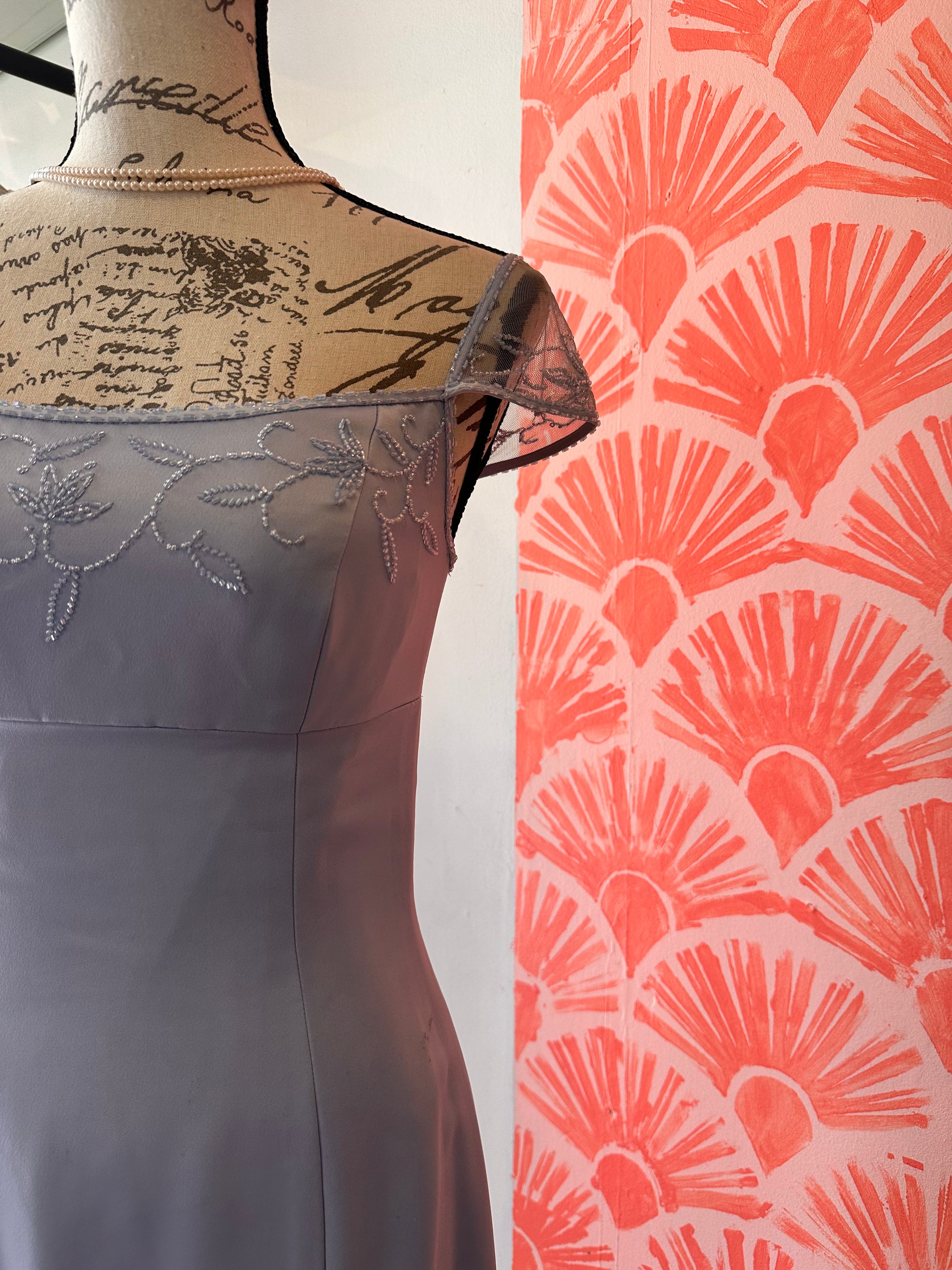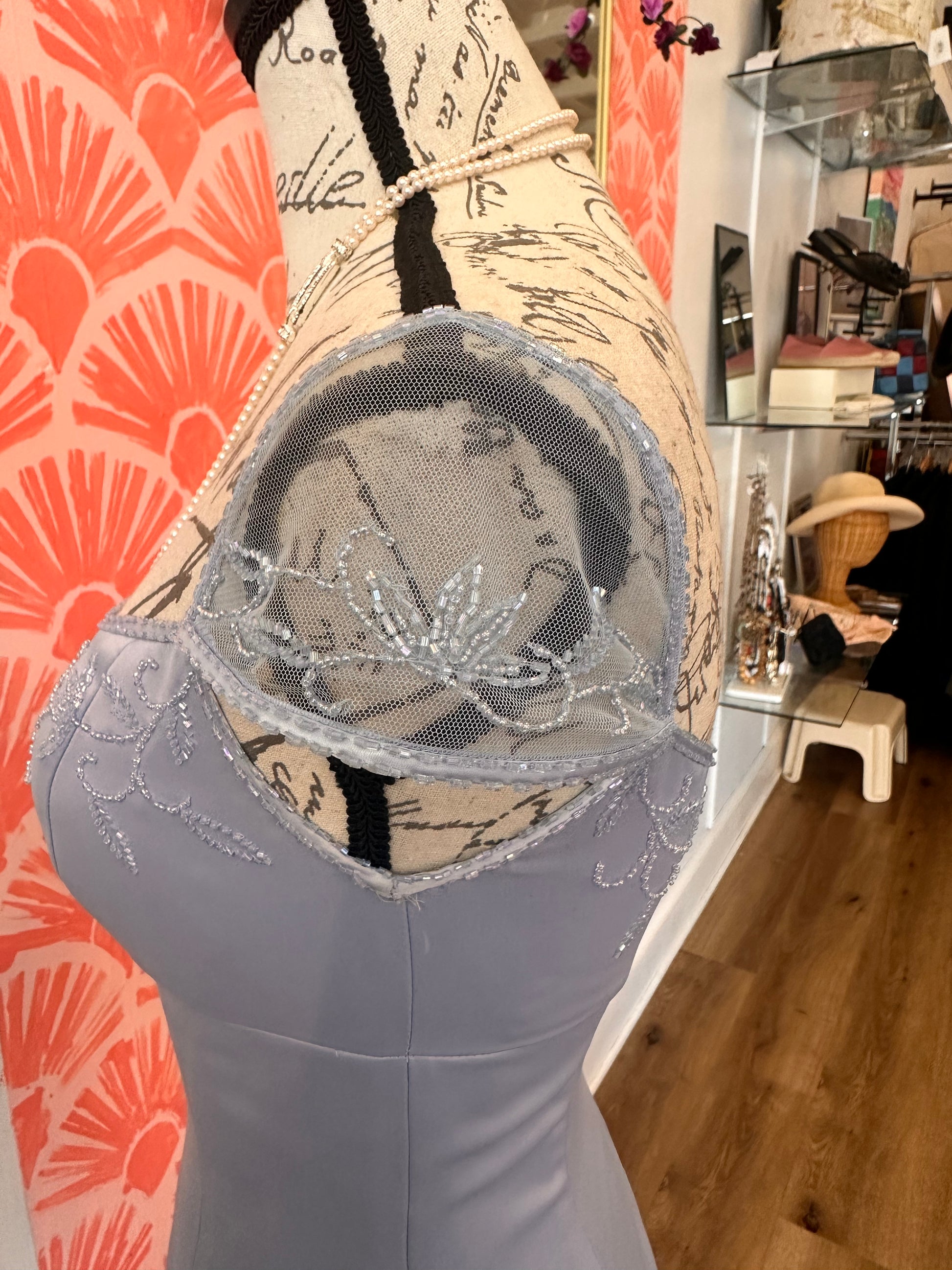 • Stunning Periwinkle Gown with Hand Beaded Detailing