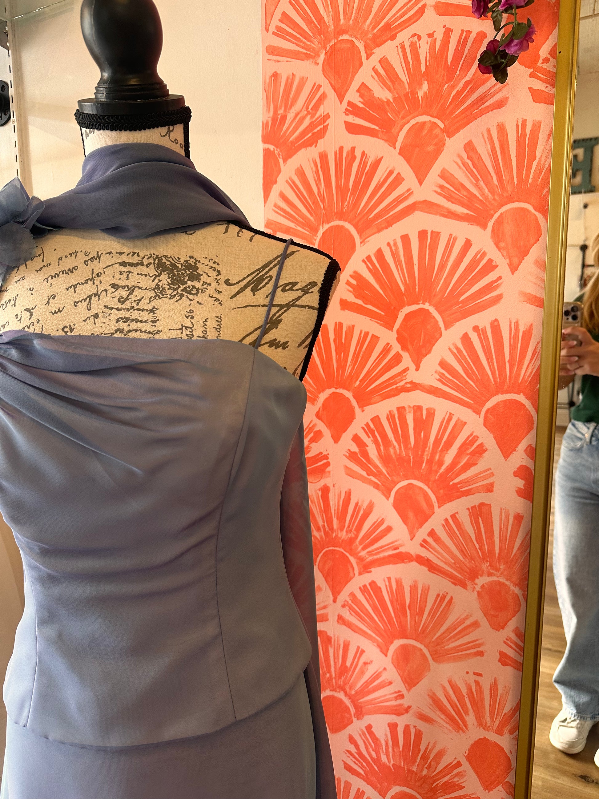 • Gorgeous Iridescent Periwinkle Gown with Shawl